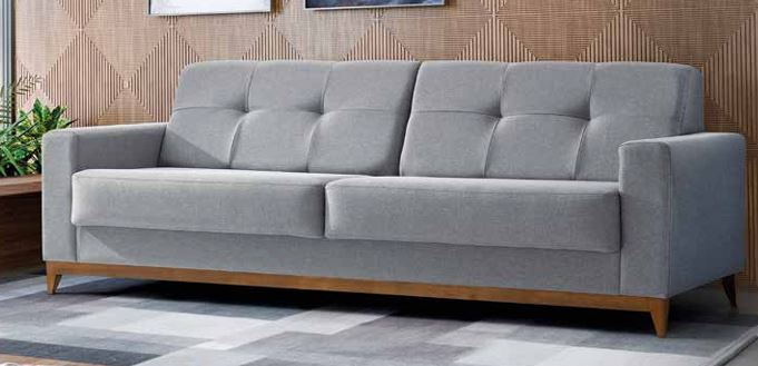 Estofados Living com formas puras e visual clean,com estrutura de madeira maciça e assento e encosto estofados.A base de madeira maciça com acabamento Natural destaca o tecido e a costura do encosto, trazendo estilo e personalidade para esta peça contemporânea.